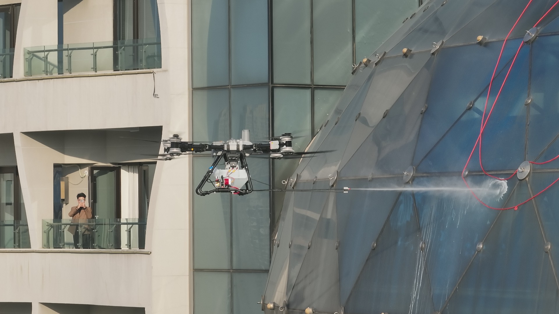 科創(chuàng)賦能丨武漢國(guó)博公司開展高空異形建筑體無(wú)人機(jī)清洗實(shí)驗(yàn)