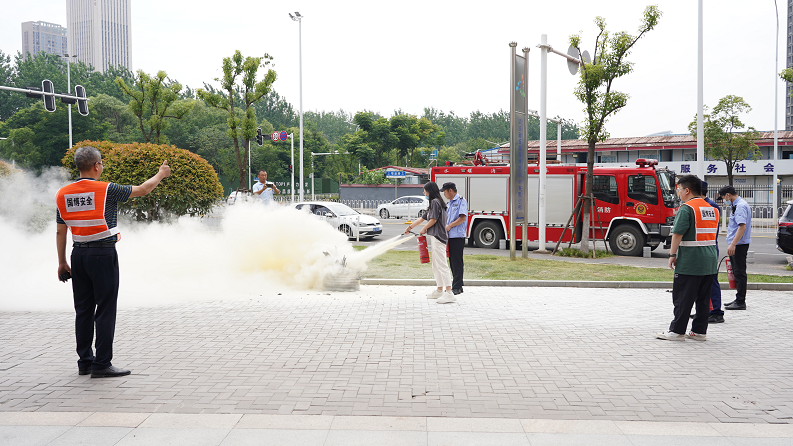 疏散演練環(huán)節(jié)結束后,公司組織開展了滅火器實操演練活動。由國博消防站教員講解了滅火器的使用范圍和使用方法,隨后公司各部門及所屬酒店公司員工在消防教員的指導下進行了滅火器滅火實操。