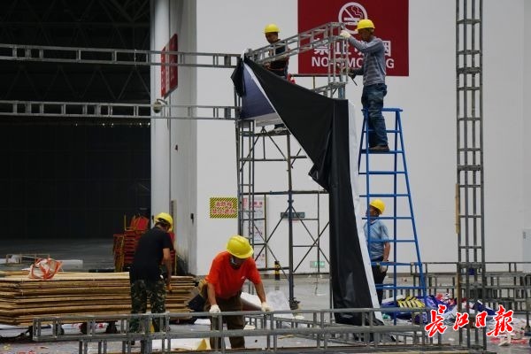 4月底,國博曾在一周內(nèi)連續(xù)承接3個(gè)大型展會(huì)。一般情況下,開展前都有2-7天不等的布展期。但在那個(gè)星期,布展時(shí)間被“極限壓縮”至1個(gè)晚上,上一場展會(huì)撤展后,下一場立刻進(jìn)場,連夜布展。曾昊組織人員提前用3種顏色的線,在地上畫出不同展會(huì)的展位分布圖?!耙贿叢鹨贿厹?zhǔn)備,已經(jīng)成了常有的事。”曾昊說。