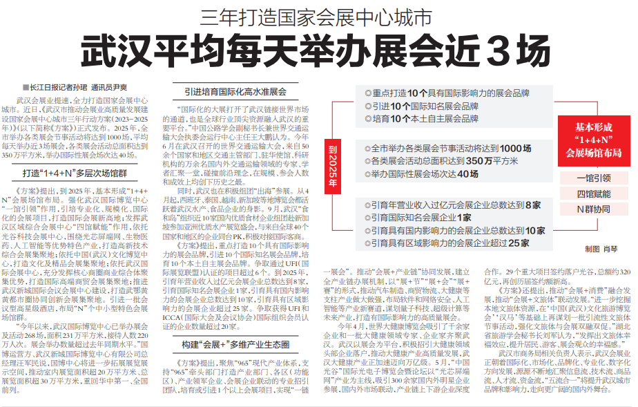 10月23日,長江日報刊發(fā)《三年打造國家會展中心城市 武漢平均每天舉辦展會近3場》文章,報道聚焦武漢...