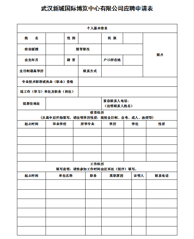 附件: 《武漢新城國際博覽中心有限公司應聘申請表》